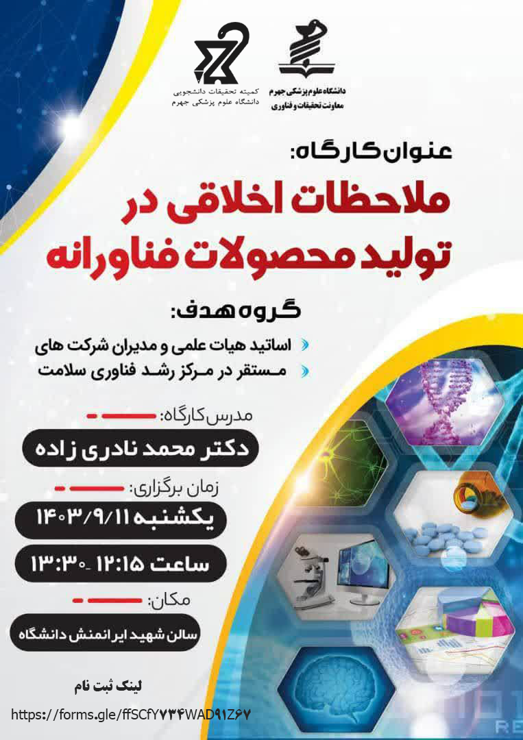 برگزاری کارگاه ملاحظات اخلاقی در تولید محصولات فناورانه